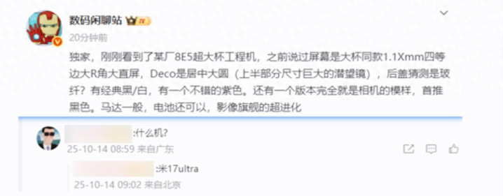 性能部分,传闻搭载的是第五代骁龙8至尊版,这是目前高通移动平台的顶级规格之一,配合小米的调校传统,极有可能会优先拉满性能释放。