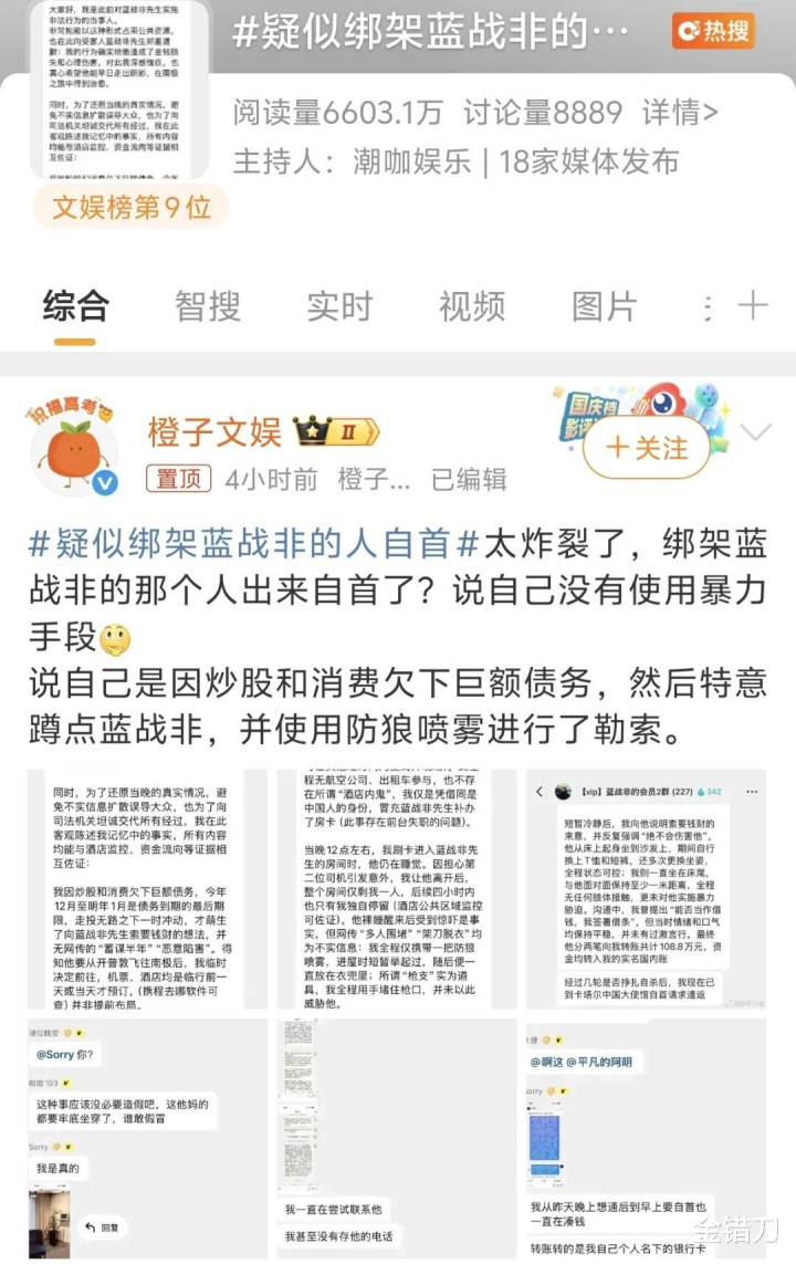 自从前两天蓝战非自曝被绑架,相关话题多次登上热搜,短短两天内不断反转。