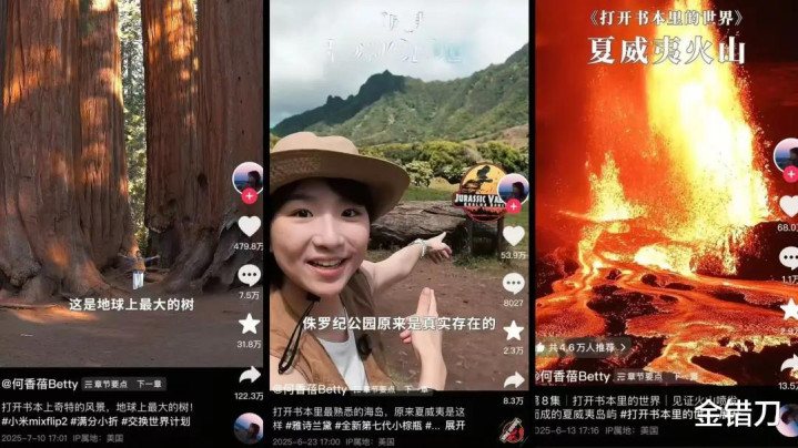 直到今年3月,她开始更新系列视频“打开书本里的世界”,她把书本中的世界级名胜古迹拍成视频,半年累计涨粉超590万。